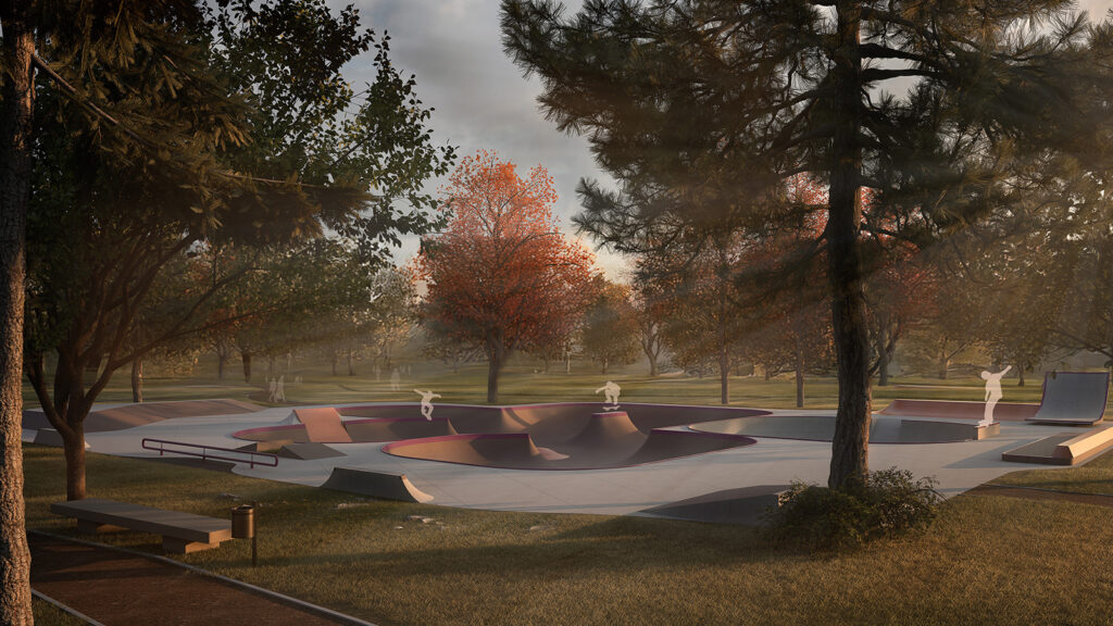 Mitten in einer idyllischen Parklandschaft entsteht ein Skatepark, der nicht nur funktional, sondern auch architektonisch überzeugt. Das Projekt zeigt, wie modernes Design und Landschaftsarchitektur eine Symbiose eingehen können, um einen Raum für sportliche Aktivität und Erholung zu schaffen. Die besondere Kombination aus ästhetischer Gestaltung und praktischer Nutzbarkeit hebt diesen Skatepark hervor und macht ihn zu einem Vorzeigeprojekt.